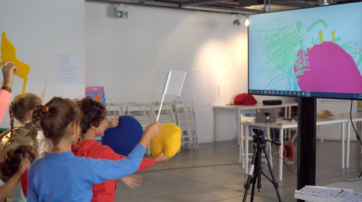 Children explore Istanbul Modern’s collection to create digital compositions using the Monnom software. By linking physical objects and bodily movements with virtual images, this workshop offers a technology-based art experience. It bridges the gap between physical space and digital canvases through interactive, research-driven design.